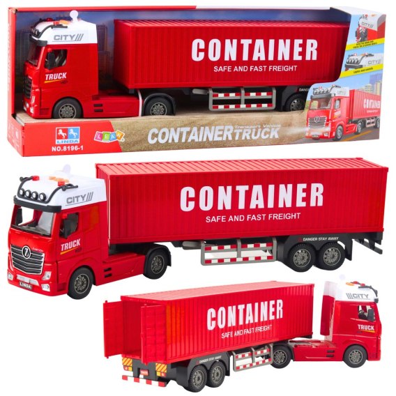 Ciężarówka Transportowa Z Kontenerem Światła Dźwięki Czerwona
