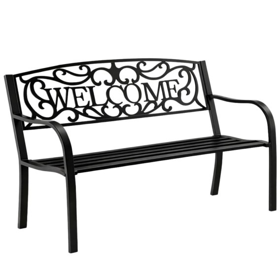 METALOWA ŁAWKA OGRODOWA WELCOME 3 OSOBOWA CZARNA STALOWA TARAS OGRÓD