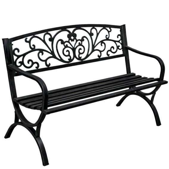 Ławka Ogrodowa Taras Ogród Parkowa Metalowa Oparcie Zdobiona Czarna 127 cm