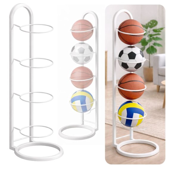 • Pionowy Stojak Regał Na Piłki Metalowy Funkcjonalny Biały