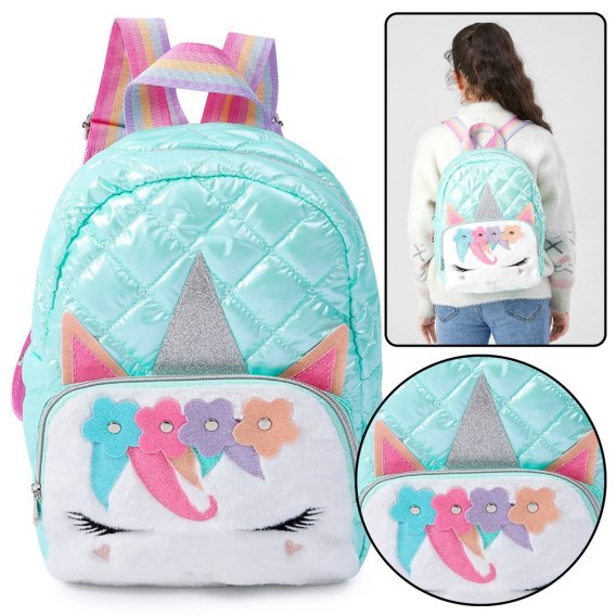 Plecak Dziecięcy Szkolny Pikowany Jednorożec Turkusowy 32cm